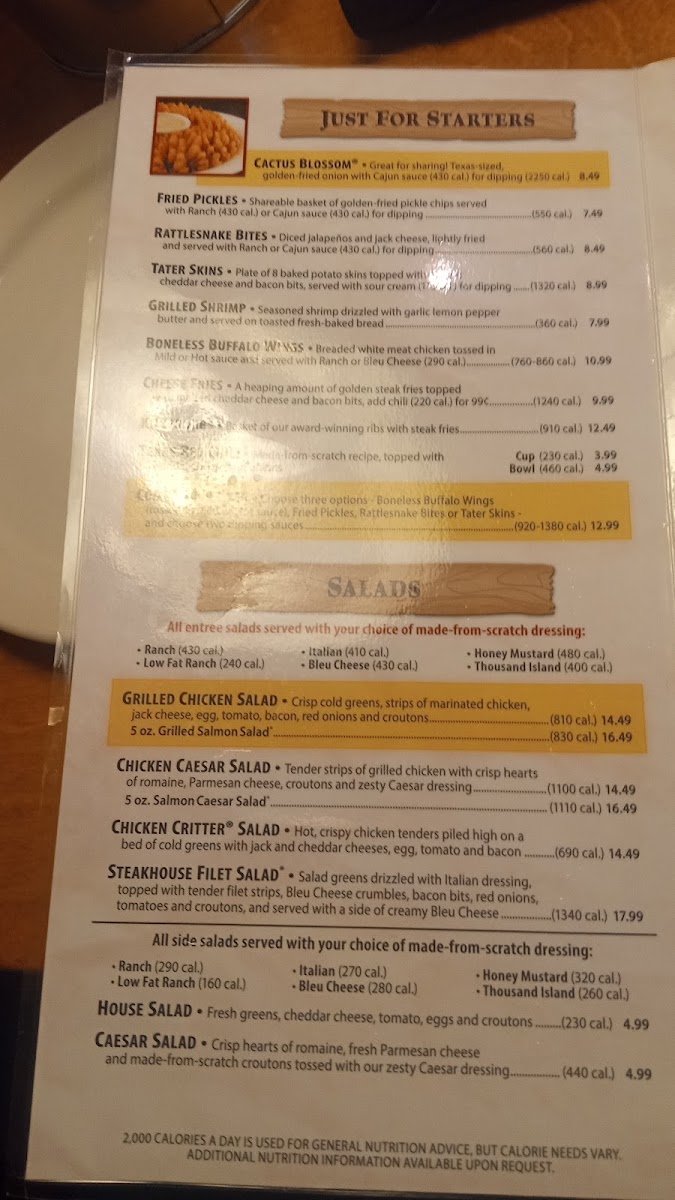 Texas Roadhouse - Camden Menu